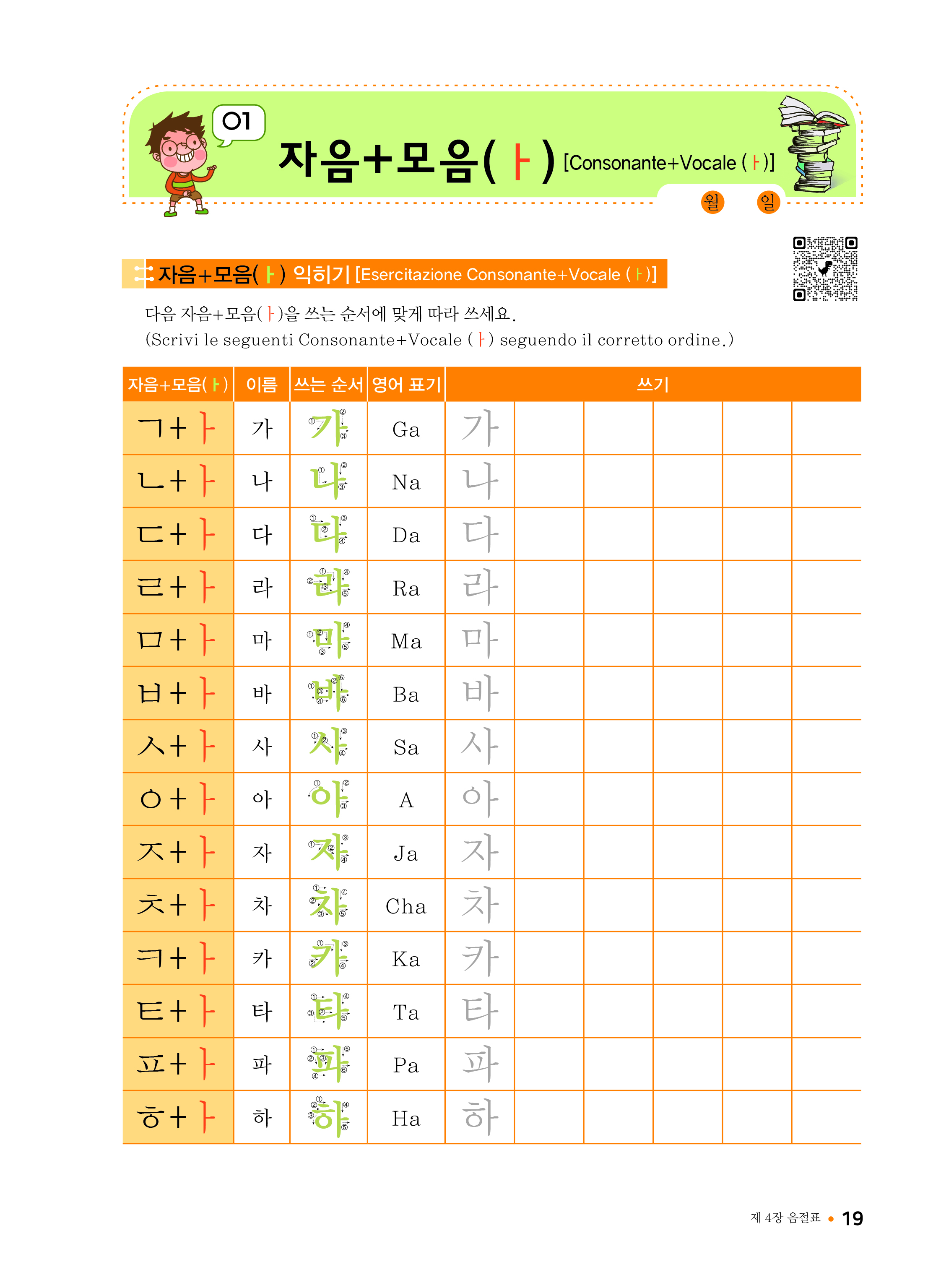 이번에 '이탈리아어를 사용하는 국민을 위한 기초 한글 배우기 1호 기초편'을 위와 같이