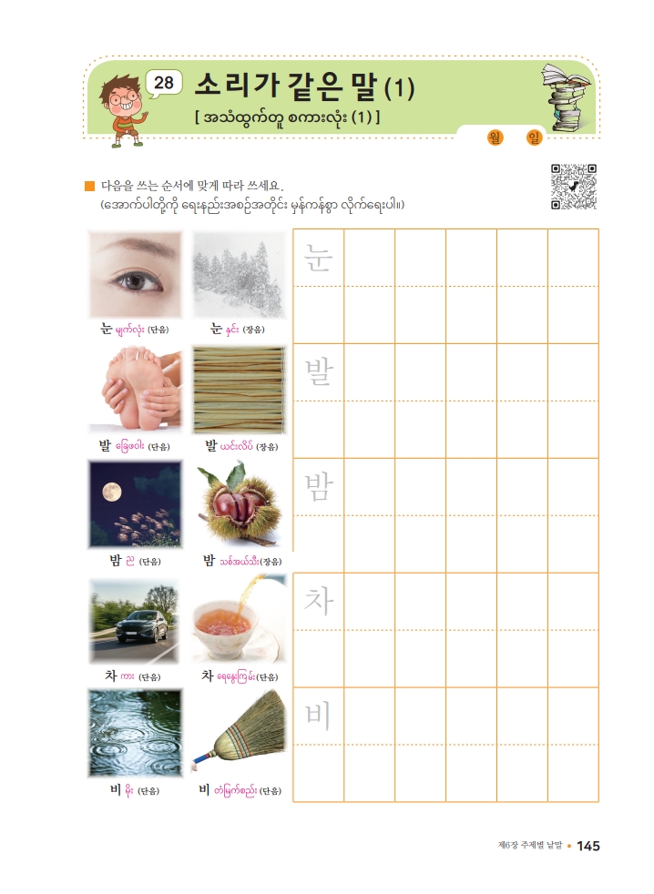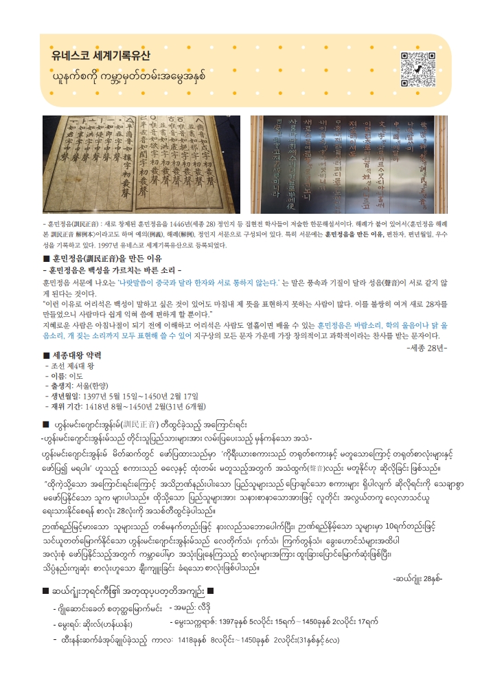 이번에 '미얀마어를 사용하는 국민을 위한 기초 한글 배우기 1호 기초편'을 위와 같이